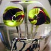 - Ca. 1900 - 1925. Five chartruse and maroon trumpet flowers rising out